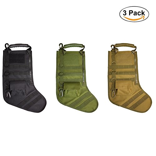 Set of 3 Tactical 20 inch Christmas Stockings for Man with Molle Gear - Black, Od Green, Khaki
