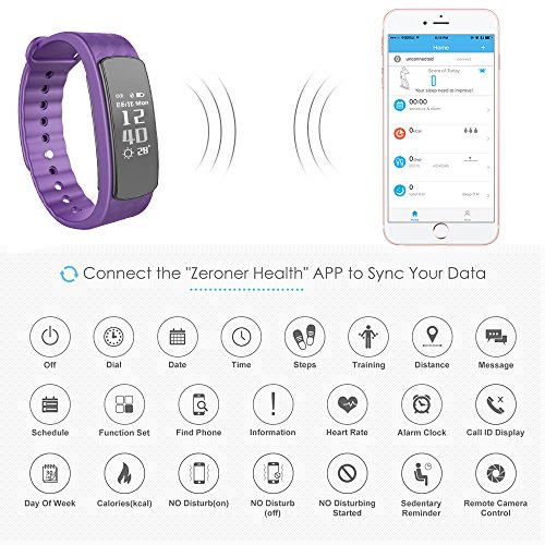 -. Feature : CARING ABOUT YOUR BODY HEALTH INDEX? HEART RATE MONITOR and abnormal notification, SLEEPING MONITOR. Especially suitable for the elderly, always monitor the body. Better to make adjustments. Eliminating the cumbersome to go to hospital checking, as well as the traditional large machine trouble. Take charge of your body from now on with our stylish industry-leading Smart Wristband! / LONG BATTERY LIFE, EASY TO USE BY GESTURE CONTROL. Charge the battery for about 1.5 hour from the USB connection and use the HRM for 5-8 DAYS standby time. Gesture control easily and comfortable. Elegant cool colors, COMFORTABLE SILICONE RUBBER BAND WITH SUPER LIGHT WEIGHT SLIM DESIGN, large OLED screen display, Switch the screen vertically, USB charger port inside. Perfect companion with you everywhere you go and looks good no matter what you're wearing! What are you waiting for? / WON'T MISS IMPORTANT MESSAGES, CALLS, SPECIAL MATTERS. 0.96"OLED Display caller's name, information content. Support APPs such as Facebook, Twitter, Instagram, WhatsApp, Skype, Wechat, Email, SMS, etc. Call / SMS / Remote Capture, Weather Shown, Temperature Shown, Schedule Reminder and Read on Screen (Touch Screen Supports reject a call). Multi-language supported. Time, Date show SMART ALARM reminds you what to do, long time work also need approP.R.Iate rest and other reminders. / IPX67 WATER RESISTANT. Waterproof Materials, Syncs automatically and wirelessly to computers iOS, Android and Windows devices with intelligent chip, Bluetooth 4.0 wireless technology, smart "Zeroner Health" APP, easy to be connected and upgrade via APP. Steps, Calorie, Activities Tracking, Reminders to Move, Guided Breathing Sessions, Multi Sports Management, Auto-sleep Tracking, Caller ID Message Alerts, Time Setting, Customize Alarm Clock, Elegant High Quality Design, etc / KEEP MOVING ENJOYING A HEALTHY LIFE: Pedometer steps counter, calories counter, moving distance, etc. It will completely record your activity track. Clearly and easily see your activity all day. You will fall in love with running and doing sports when the numbers calculated and upped. What a wonderful band you are looking for!