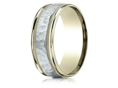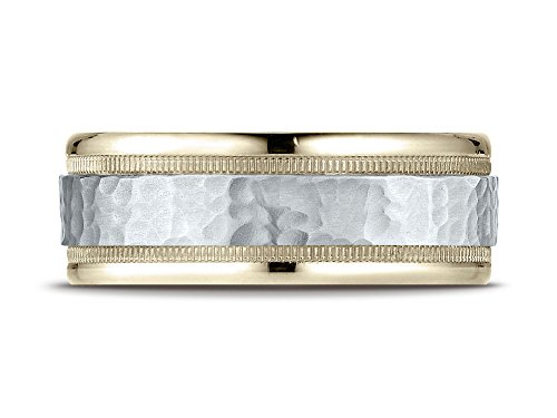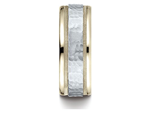 -. Title : 14k Two-toned 8mm Comfort-fit Hammered-finished Milgrain Carved Design Band 14kt Gold