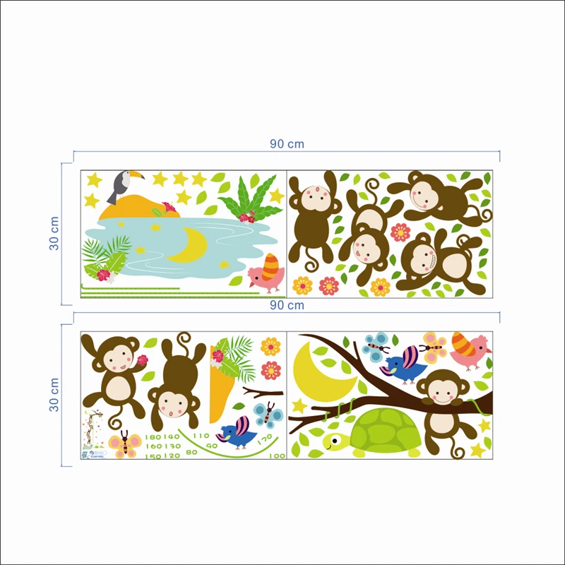 Wall Sticker Item:Cartoon Monkey Height Scale Measure Chart Wall Stickers