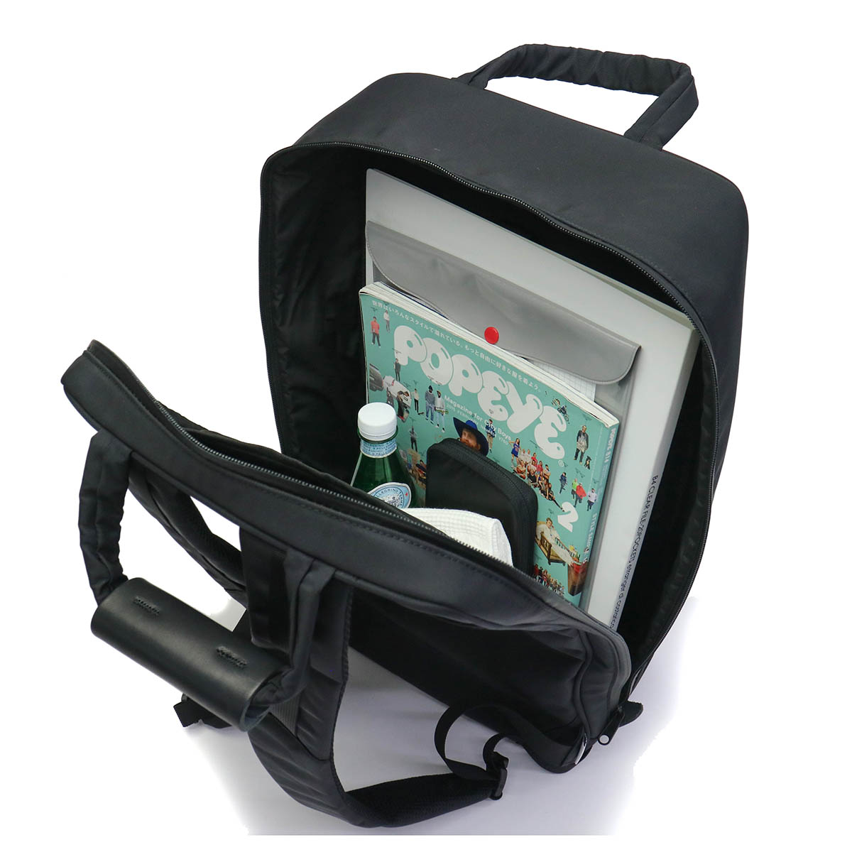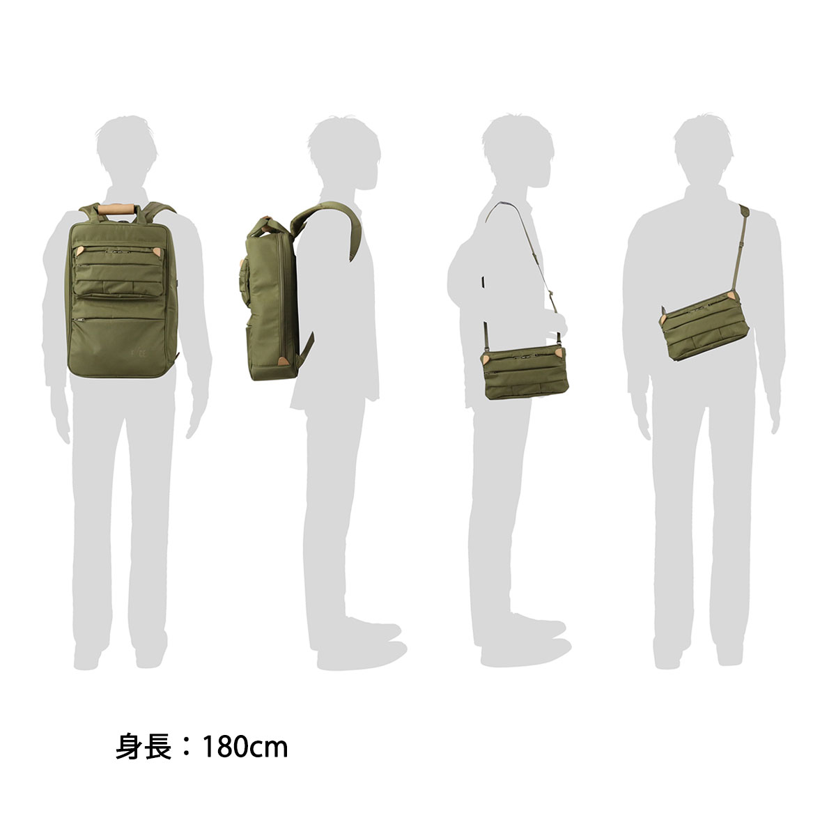 非常に軽量で撥水性も兼ね備えた『SEASONAL LINE』の取り外しが可能なサコッシュを付属したユニークなデザインがポイントのスクエア型バックパック。トートバッグとしても使用できるハンドル付きのため、すっきりとした印象で、ビジネスシーンにも違和感なくご使用いただけます。