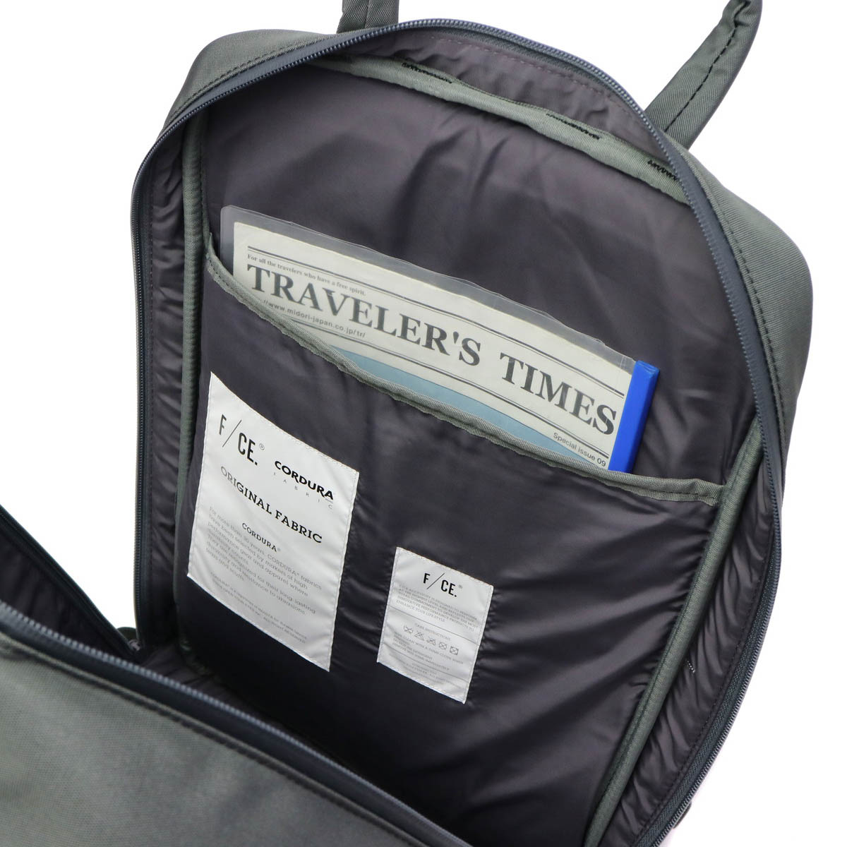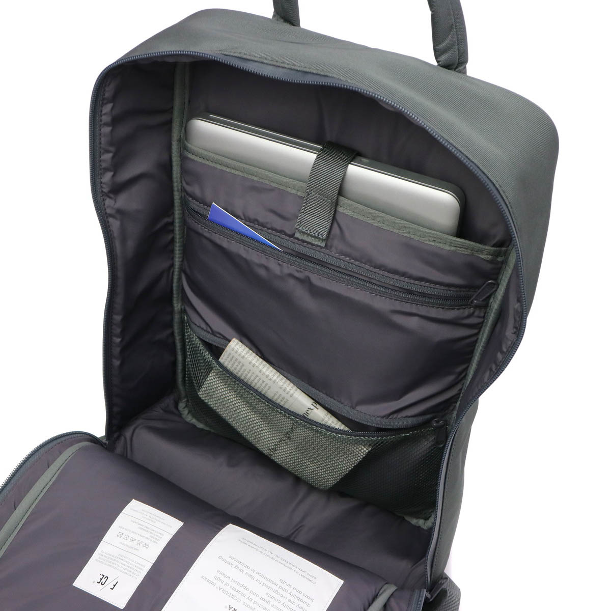 B4サイズに対応した収納スペースは、フルオープン仕様で荷物の出し入れがしやすいのがポイント。内部にはPC収納が備えられ、さらには、アイテム別に荷物を管理できる小分けポケットも充実しています。