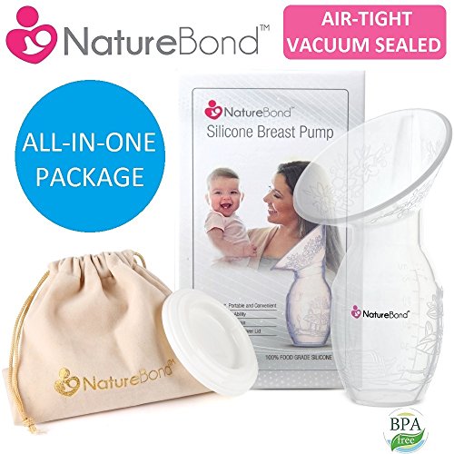 NatureBond Silicone Manual Breast Pump Breastfeeding Milk Saver Suction | All-In-1 Lid, Carry Pouch, Air-Tight Vacuum Sealed in Hardcover Gift Box. BPA...