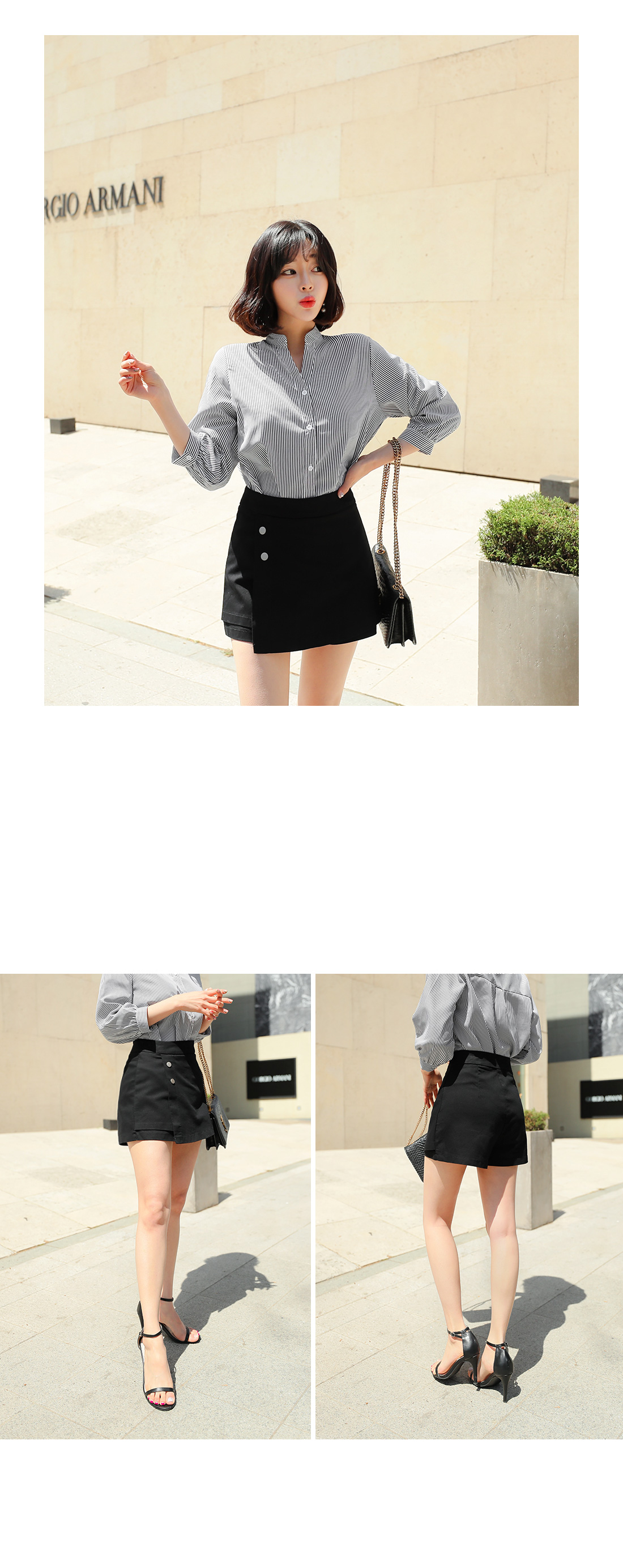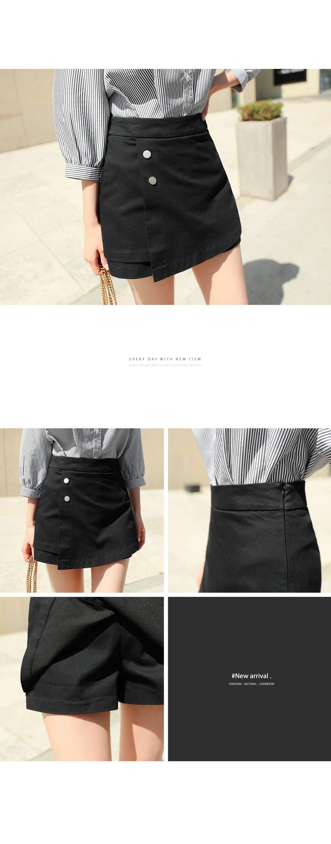 MD COMMENT 짱짱한 신축성을 자랑하는 치마바지를 소개해요.허리 라인까지 짱짱한 신축성을 자랑하며랩스커트 디자인의 팬츠 아이템으로편하고 가볍게 입기 좋아요.심플하고 깔끔한 디자인에단추 디테일이 포인트로 더해져더욱 매력적이며 밋밋함을 없애주었답니다.블라우스, 티셔츠, 니트 등 다양한상의들과 두루두루 매치하기 좋아 활용도가 높으며데일리 아이템으로도 손색이 없어요.사이드에 지퍼 디테일로 오픈, 클로징을편하게 도와주며컬러는 블랙, 블루, 아이보리로 구성되었어요.사이즈는 S, M 2 가지로 제작되었으니상세 사이즈를 참고하여 초이스 해주세요.COLOR/SIZE 블랙,블루,아이보리S(44-55),M(55-66)MODEL FITTING 블랙/S(44-55)