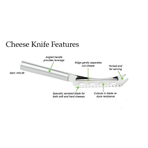 STAINLESS STEEL EDGE – It features a wide, single-sided serrated edge that is made from 300 series high nickel stainless steel. The cheese knife also has a forked end for serving.