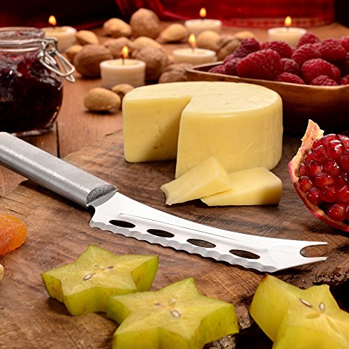 SLEEK CHEESE KNIFE – This innovative cheese knife will effortlessly cut through an array of cheeses, hard and soft. The unique and gorgeous design makes it the perfect serving knife for a cheese platter.
