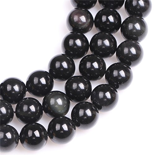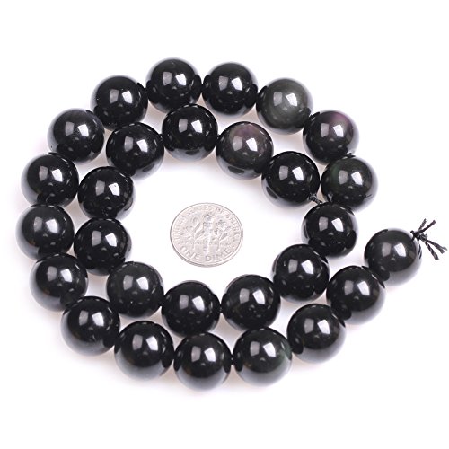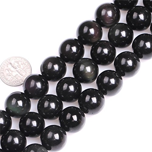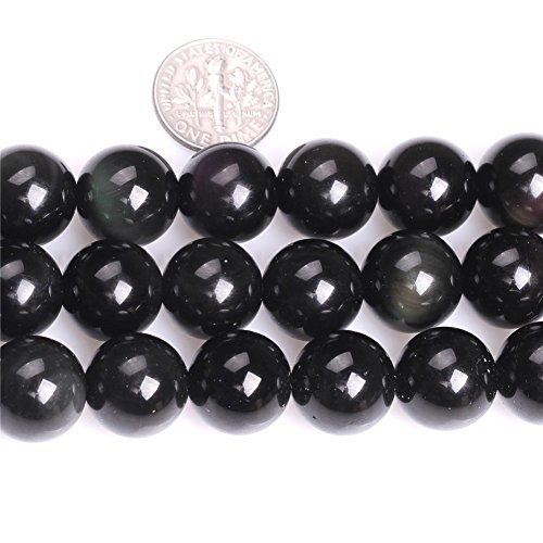 Natural Round Black Obsidian Rainbow Gemstone Loose Beads In Bulk Beads For Jewelry Making Wholesale Beads Handmade DIY One Strand 15" (14mm, GI1951)