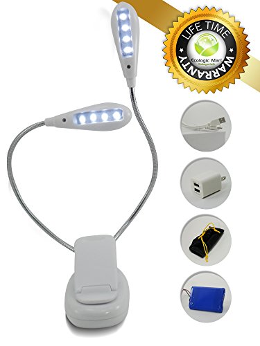 Ecologic Mart 8 LED Bulbs Book Light with 1.5H Rechargeable 1000mAh Battery, 1.0A & 2.0A AC Adapter Double Port, 78-Inch Extra Long USB Cable, Travel Bag B00XB5H74S