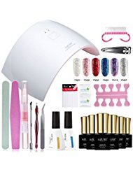 Package: 6*7ml glitter gel polish,1*24W UV LED nail curing lamp,1*nail Tools Package,1*12ml top coat,1*12ml Base coat.