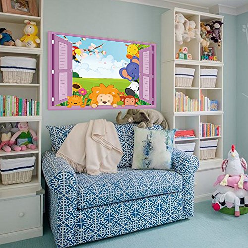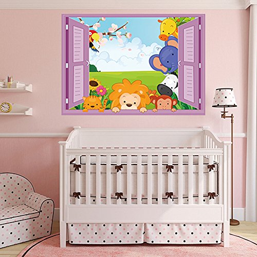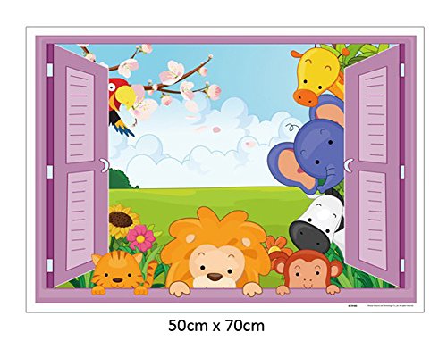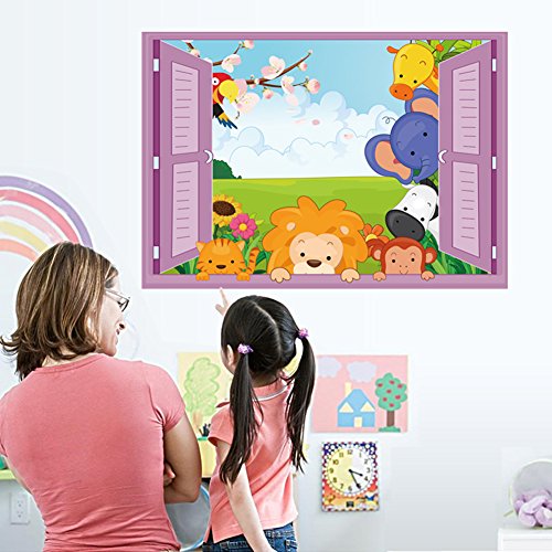 -. Title : Wallpark 3D Window View Cartoon Cute Animals Cat Lion Monkey Removable Wall Sticker Decal, Children Kids Baby Home Room Nursery DIY Decorative Adhesive Art Wall Mural
