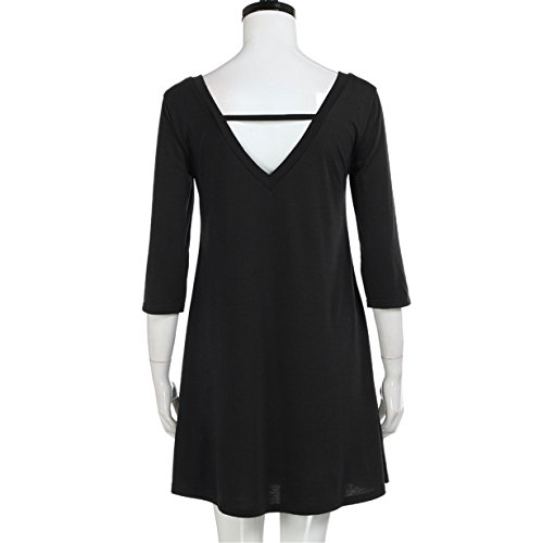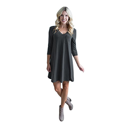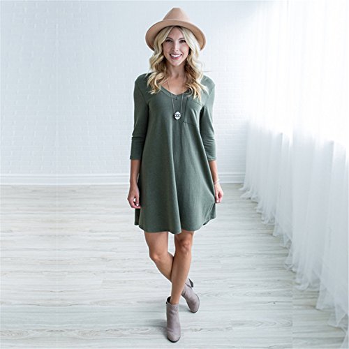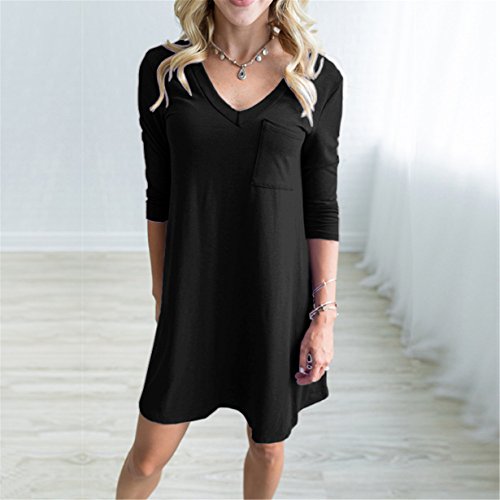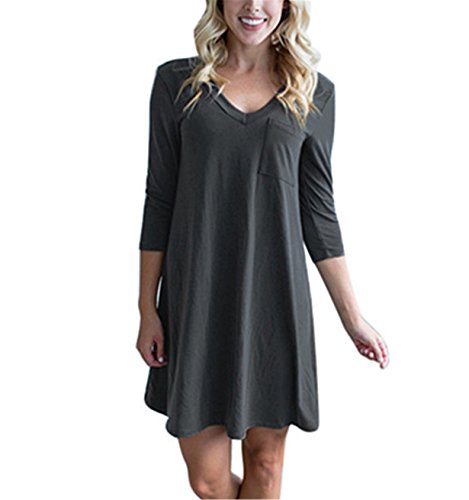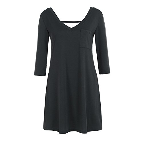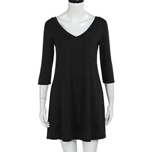 -. Title : HOT SALE! Londony Women's Casual Back V Neck Plain Simple T-Shirt Loose Swing Dress With Pocket Design