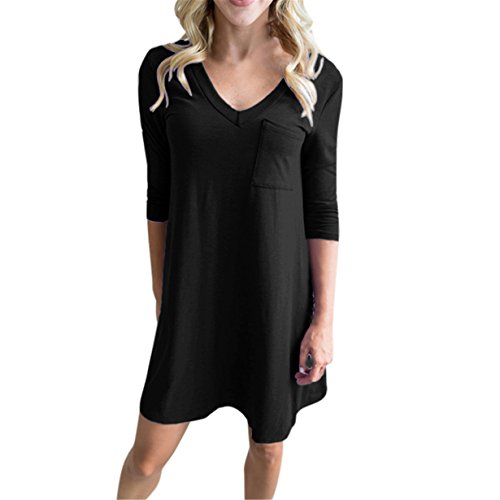 -. Warranty : HOT SALE! Londony ★ Women's Casual Back V Neck Plain Simple T-Shirt Loose Swing Dress With Pocket Design