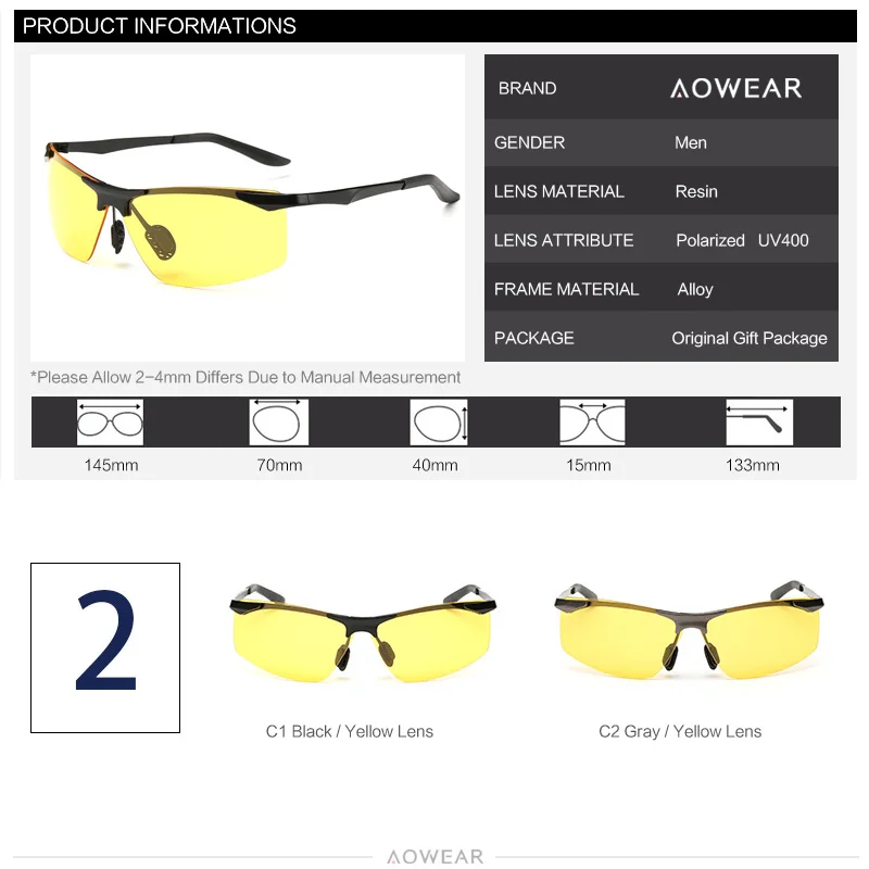 Colors:Black, Gray Yellow Night Vision Lenses