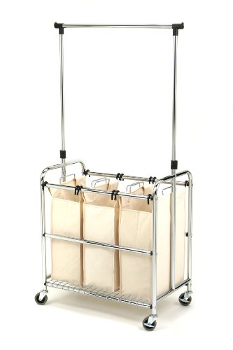 - Title : Seville Classics SHE16165 3-Bag Laundry Sorter Cart With Hanging Bar