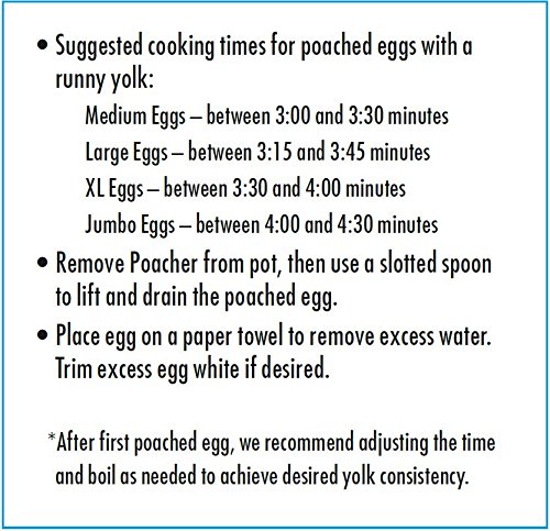 Poached eggs: delicious to eat but intimidating to cook.until now. We created our Silicone Egg Poacher to help you quickly and easily create perfectly poached eggs - eggs worthy of sharing in real life and on social media. We looked at the traditional (and painstaking) water bath poaching method for inspiration, but designed the Poacher for modern cooks with a little more on their plate. The high-heat resistant silicone body cradles the eggs while the funnel shape guides them into the water to prevent the yolk from breaking. A carefully designed hole pattern optimizes water flow around eggs for even cooking. When they're ready, use the handy tab to safely remove the Poacher from the water. With helpful fill lines show just how much water to use and collapsible, compact storage, you're sure to make eggs that are as pretty as a picture. For best result please see images directions.Feature