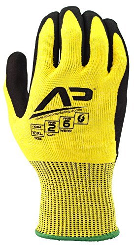 -. Title : Apollo Performance Work Gloves, Tool Grabber Cut Protect 2, Cut Resistant Glove, 13 Gauge HPPE Knit, Triple Polymer Hybrid Grip, Touch Screen Capabilities with Lightning Touch Technology, ANSI Cut Level 2, 1 Pair, Hi Vis Yellow