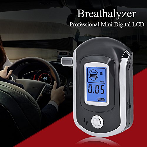 -. Feature : High Accuracy and Large Digital LCD Screen: With sensitive semi-conductor sensor, it can accurately and easily show your level of the alcohol intoxication in your body within seconds and provide you high accuracy test result(up to 0.01mg/l), four units of measurement can be converted(%BAC , ‰BAC, mg/l, mg/100ml). Also can read the result at night with blue back-light / Auto-alarm Function: It will send out audio and video warning to alarm you when the test result is above 0.05%BAC or 0.50‰BAC or 0.25mg/L or 50mg/100ml with the unique smart MCU control function / Energy-saving Mode: It will automatically shut off to save power after finishing the test for 5 seconds and powered by 3AAA batteries (not included) Moreover, it is designed with low power indication,Equipped with 5 mouthpieces, it will be much easier for you to test your family or friends. / Compact Design: Comes in a space-saving, lightweight, portable design, ONLY Pocket-size, completely easy to hold and carry everywhere. And comes with a cloth bag, it is very convenient for you to keep when do not use it / Note: In order to make the test results accurately,Please use the Breathalyzer at least 20 minutes after drinking, and then test, you'd better test it last one time that last 3 minutes.due to the absorption of alcohol from the digestive system to the blood takes about 20 minutes. Test it immediately after drinking , the results can only reflect the oral alcohol.Be sure to flash the characters to blow, otherwise do not work.