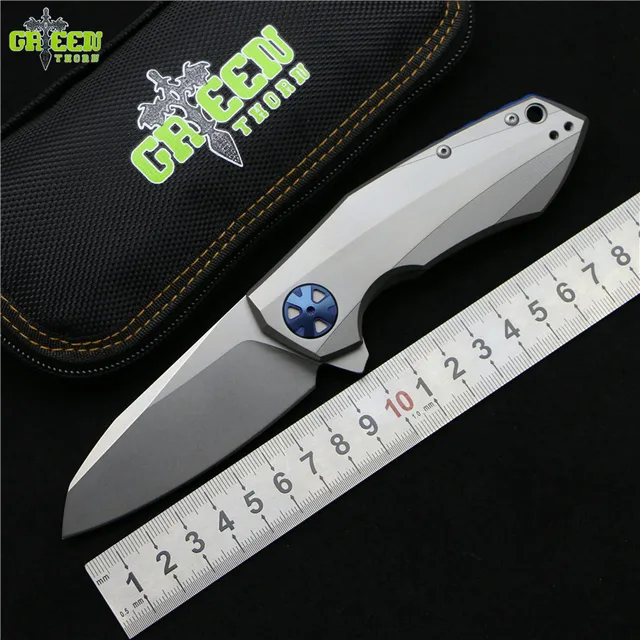 Green thorn zt0456 플리퍼 접는 칼 베어링 d2 블레이드 titanium 핸들 야외 캠핑 사냥 포켓 과일 나이프 edc 도구