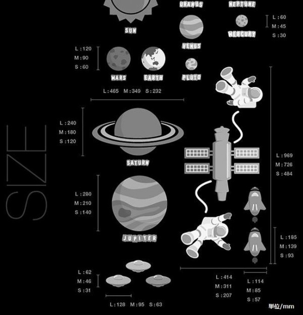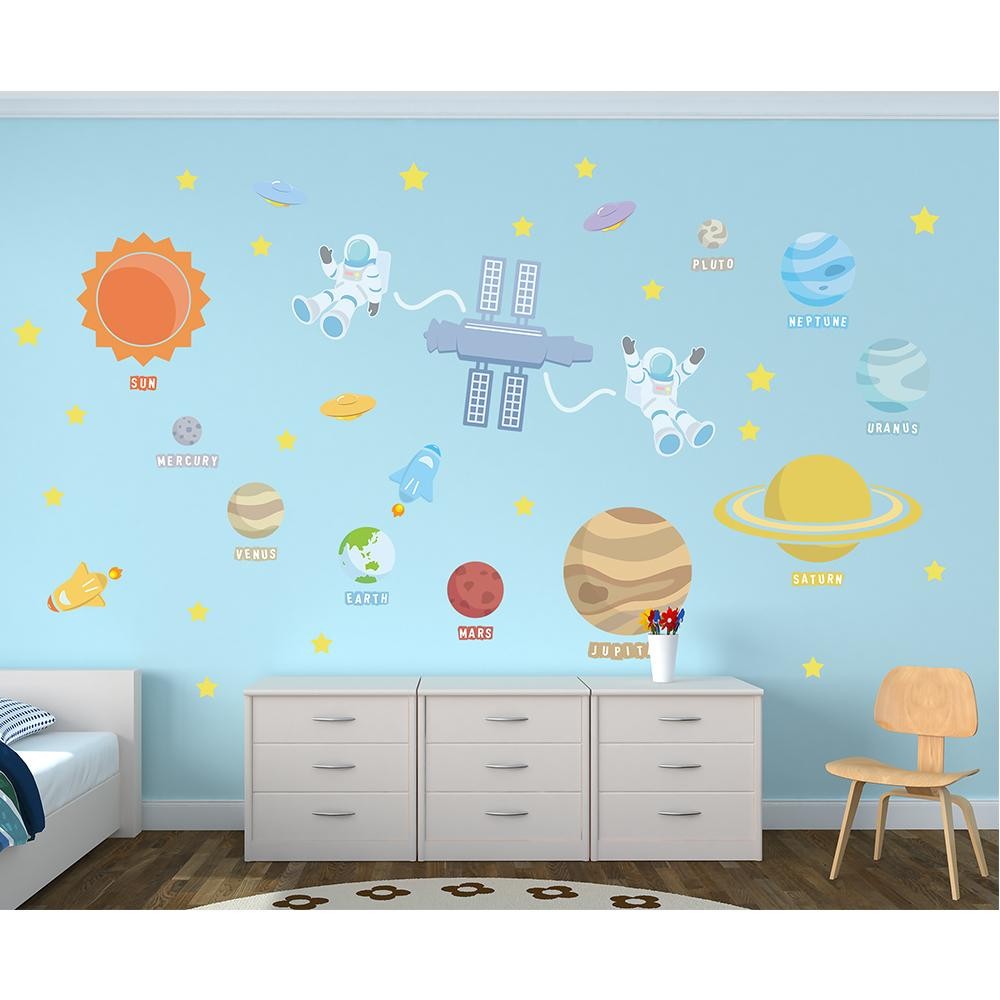 お子様が眠る前に壁に描かれた遠い宇宙を見ながら胸を躍らせられる、そんなウォールステッカーです。 シンプルな壁紙にもカラー壁紙にも似合い、お部屋を楽しく彩ります。 |