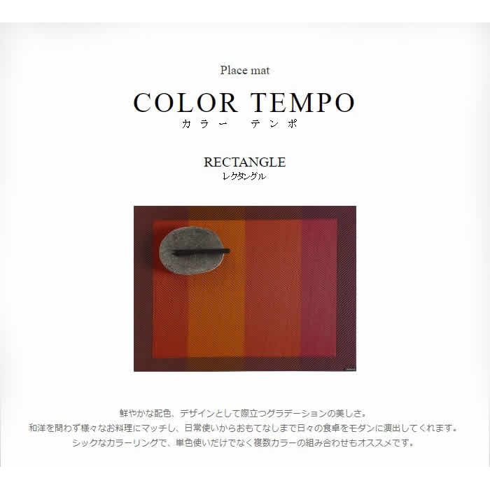 원본상품명: 【ポイント10倍 送料無料】 チルウィッチ ( chilewich ) テブルマット キッチンマット ランチョンマット おしゃれ テブルウェア カラテンポ パティ 新生活 ホテル仕 モダン 高級 長持ち ブランド [ chilewich COLOR TEMPO レクタングル ]