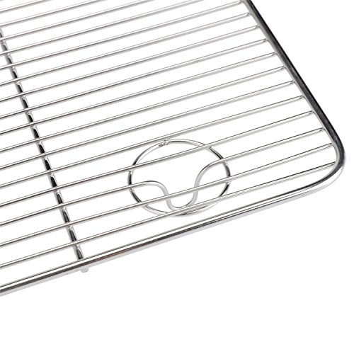 Product DescriptionHeavy Duty Cooling Racks Onmexto Stainless Steel Wire Rack 11.42x17.52 Inches for Oven Kitchen Baking Cooking Frying Pan11.42 inch by 17.52 inch cooling racks 4 elevated rack feet Stainless steel Heavy gauge construction Dishwasher safe Package include: 1x Stainless Steel Cooling Rack0