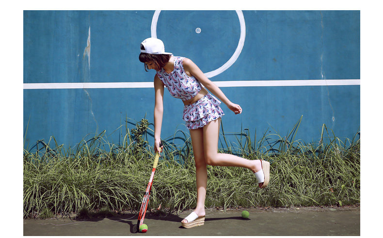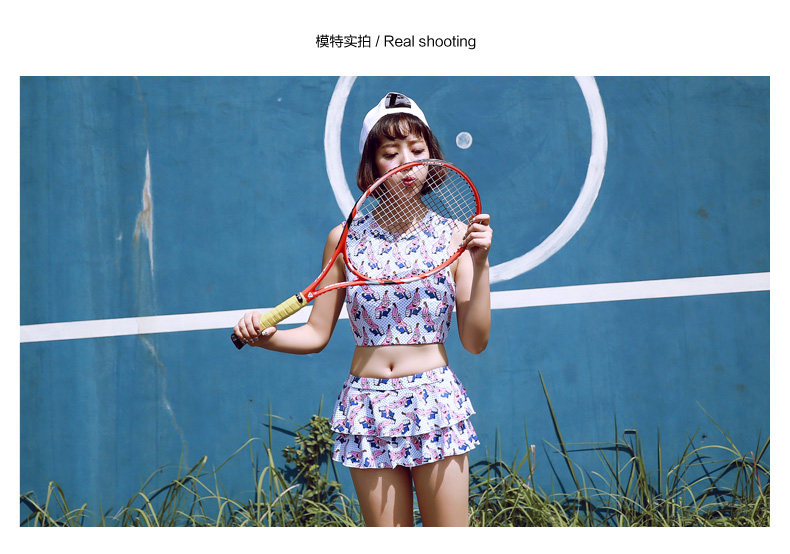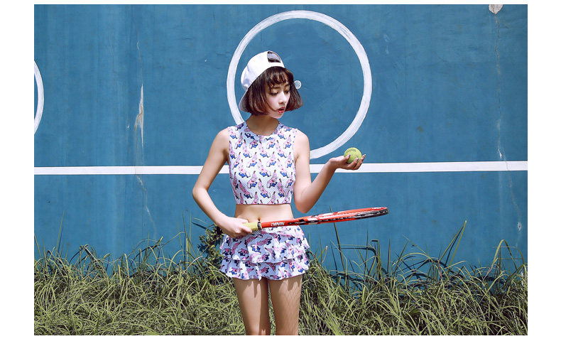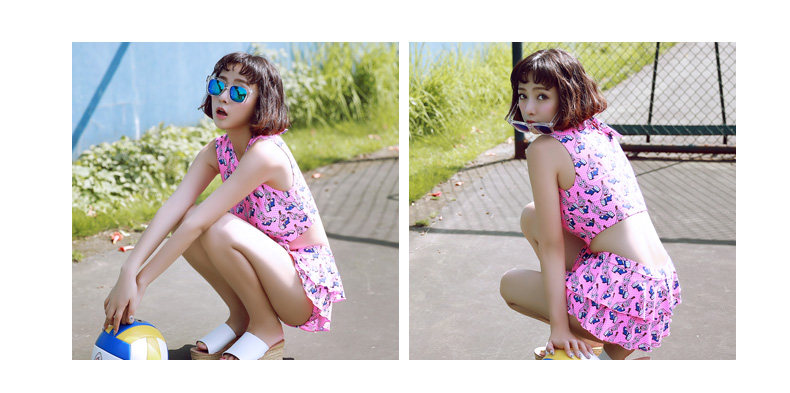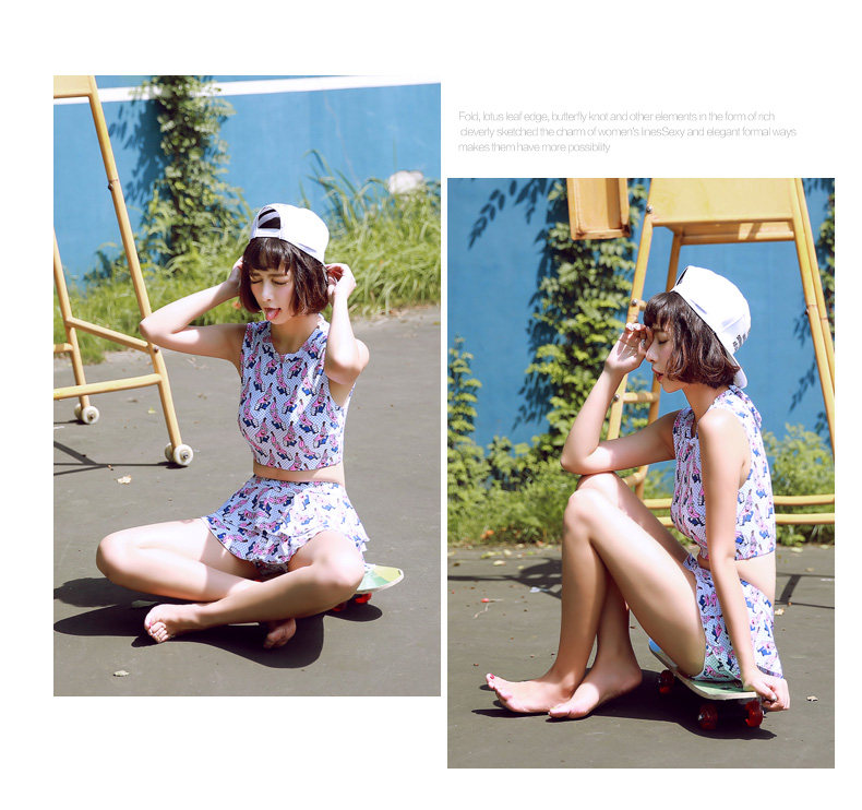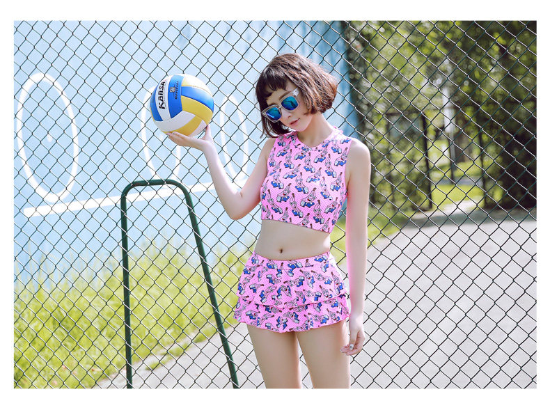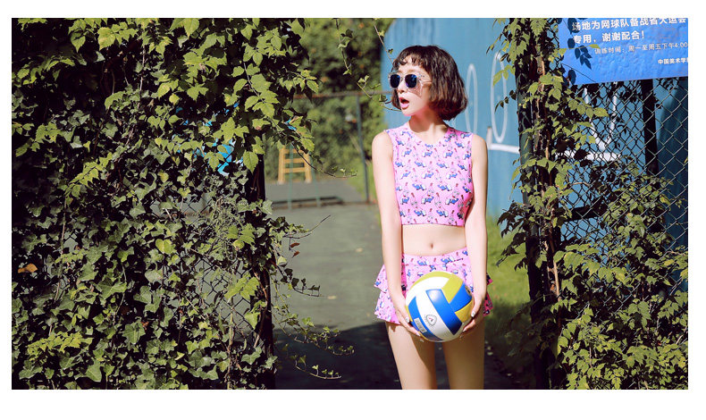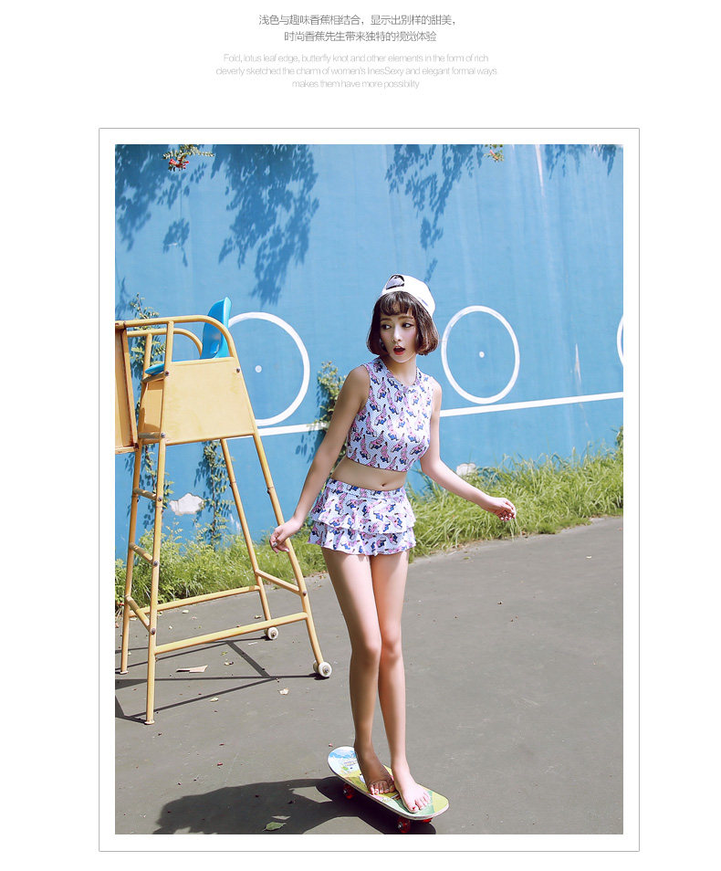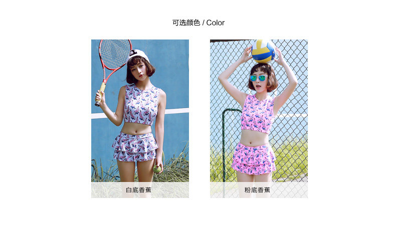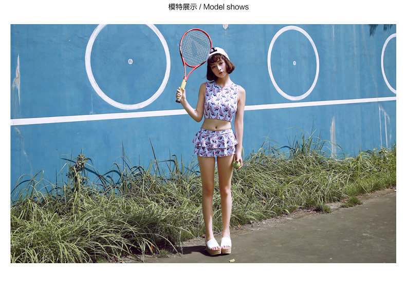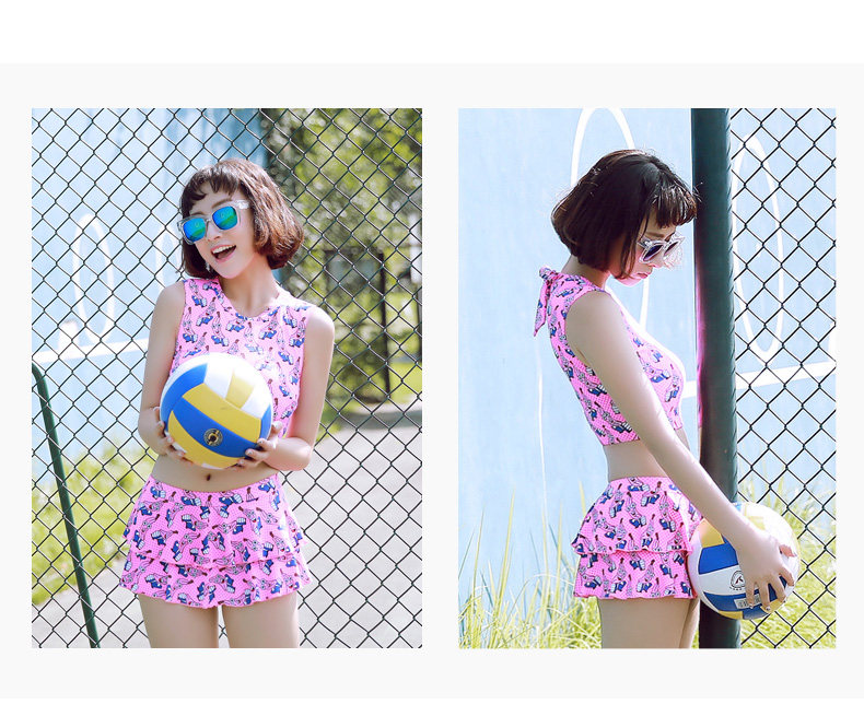 新款可爱保守显瘦小胸学生游泳衣女分体裙式温泉泳衣