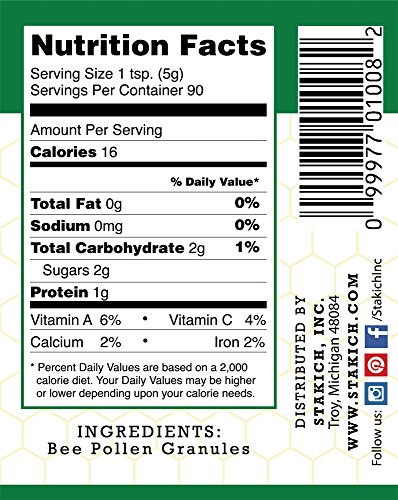 Stakich BEE POLLEN GRANULES 2 lb (32 oz) - 100% Pure, Natural, Unprocessed - (2 Pack of 1 lb)