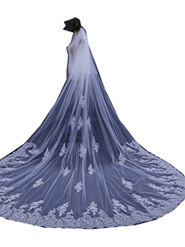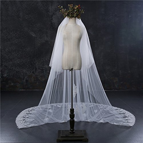 (Julang)/Accessories/Scarves/DIRECT FROM USA/Julang 3m Ivory White Lace Cathedral Wedding Veils Long Bridal Veil With Comb