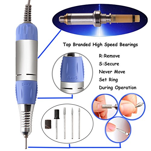 ♥ High Torque: The electric nail drill machine come with grip handpiece, with 0.02mm coaxality Max.torque and Twist lock chuck system ,you can replace grinding head easily.