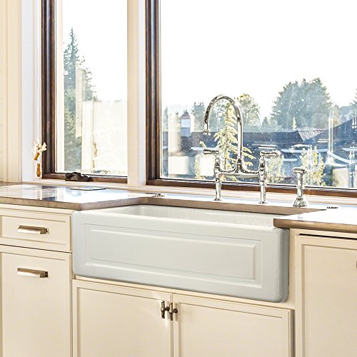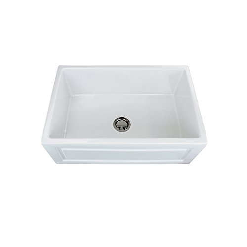 Transolid FUSH302010 Versailles 30-in x 20-in x 10-in Single Bowl Reversible (French/Plain) Farmhouse Fireclay Kitchen Sink, White
