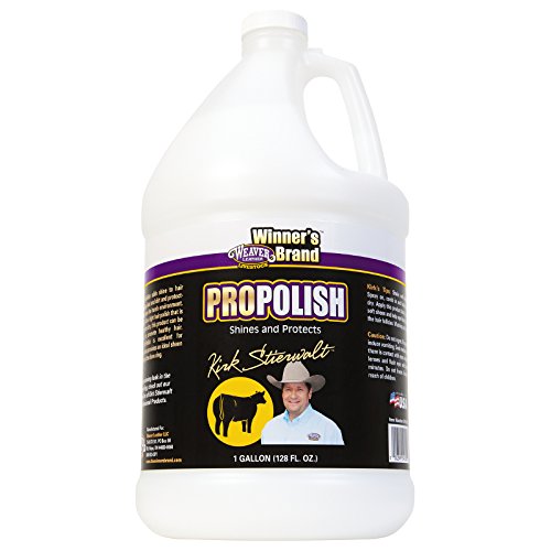 Studio : Weaver Leather Publisher : Weaver Leather Binding : Sports Product Description Formulated as a light hair polish that is non-sticky when dry, this product adds shine to hair while repelling dust and dirt and protecting follicles from the harsh environment. Stierwalt ProPolish is excellent for clipping, provides an ideal sheen before entering the show ring and can be used daily to promote healthy hair. Recommended for show cattle but suitable for use on all livestock. Kirk's Tip: For heavy sheen users, mix 1/4 liquid ProCharge to 3/4 ProPolish for just the right amount of conditioning properties and shine. Gallon (128 fl. oz.). 0