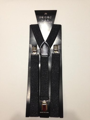 Black Glitter Suspender for Mens&womens Clip-on Elastic Y-shape Adjustable Braces