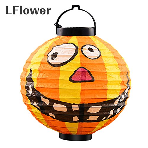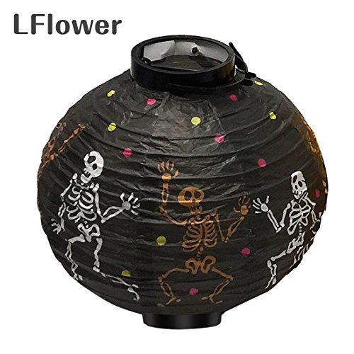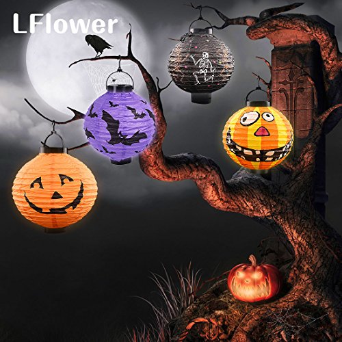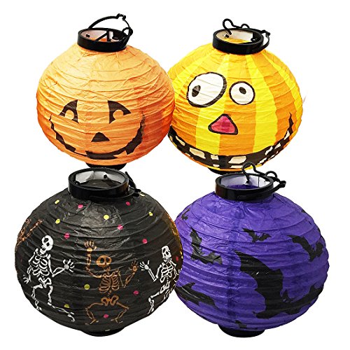 Jack-o’-Lantern [4 Pack] Halloween Decoration Lanterns with LED Light, Paper Pumpkin Lantern , by LFlower . Skeleton Bat face Lamp Light Theme Party Halloween Indoor Outdoor Holiday Party
