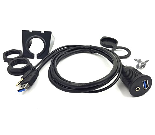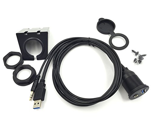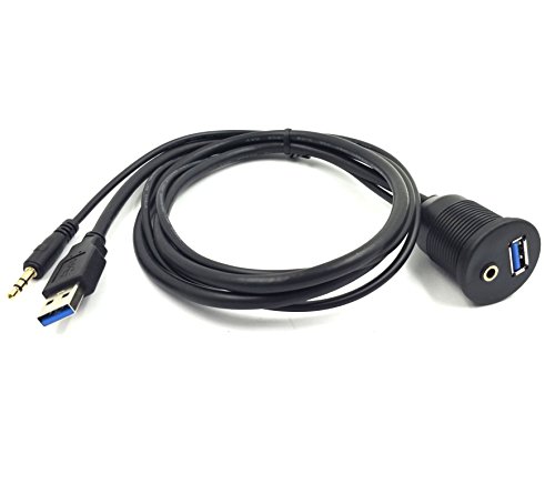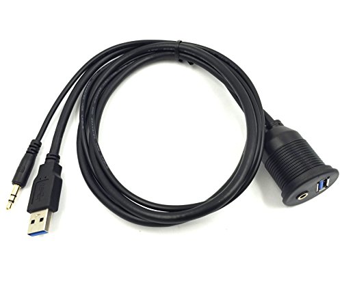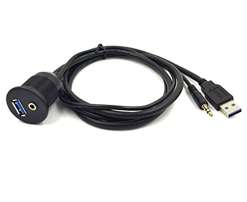 3-Feet USB 3.0 & 3.5mm Male to USB 3.0 & 3.5mm Female AUX Flush Mount Dash Extension Cable with Mounting Bracket for car/Boat/Bike/Trailer dash or other surface (USB & 3.5mm to USB & 3.5mm)