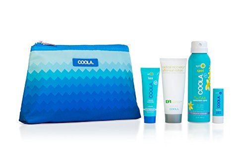 Our signature coola travel kit collection brings you a quartet of our most popular luxury organic and natural suncare must-haves. Each of our high-performance products protect and nourish the skin with vitamins and age-defying antioxidants, while remaining free of parabens, paba, petroleum and phthalates. All in a reusable, travel-friendly and gorgeous coola travel clutch. Includes: classic face cucumber spf30 moisturizer-0.85 fl oz/25 ml, sport spf30 pina colada spray-3.4 fl oz/100ml, liplux spf30 original-0.15 oz/4.2g, er plus radical recovery after-sun lotion-2 fl oz/60ml.Feature