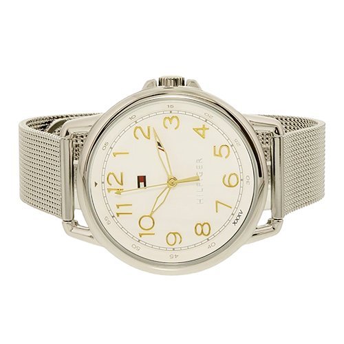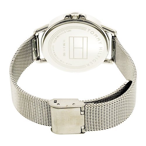Stainless steel case. Mesh stainless steel bracelet. White dial. Quartz movement. Water resistant 30 meters. Case 36mm.