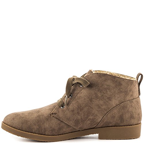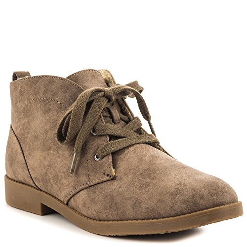Product DescriptionLace up, low heel, faux shearling lined, chukka bootie0