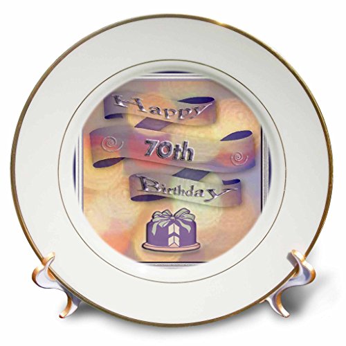 3dRose cp_24377_1 Ribbon and Cake Happy 70th Birthday Porcelain Plate, 8-Inch