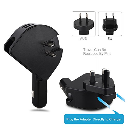 International travel charger Portable USB Charger (US Plug) with EU,UK,AU plugs. It is very easy to change from different plugs when in different countries.