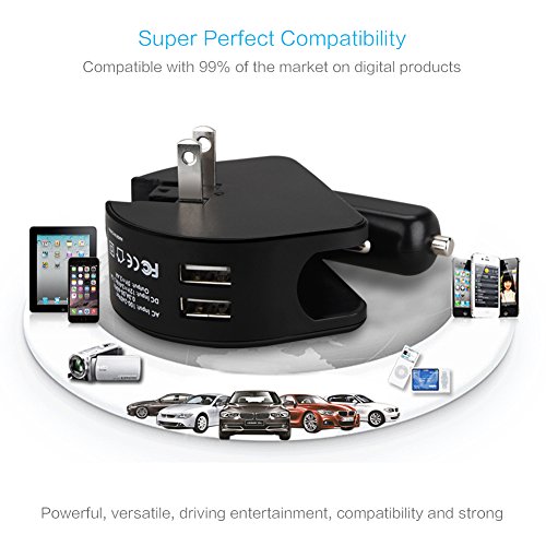 2 in 1 Charger: Efficient 2 in 1 charger can be connected to both your car and a wall AC outlet. It could be used in traveling, business trip,home,car,hotel or office etc.