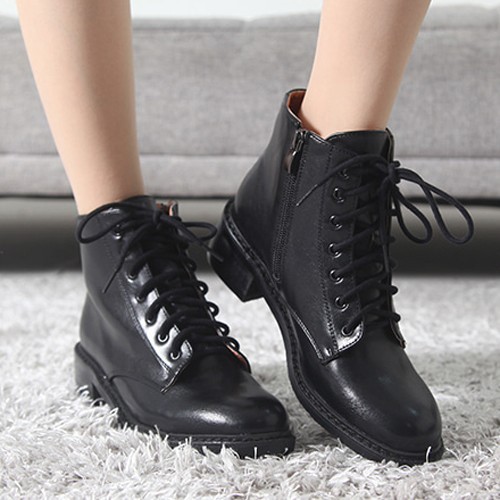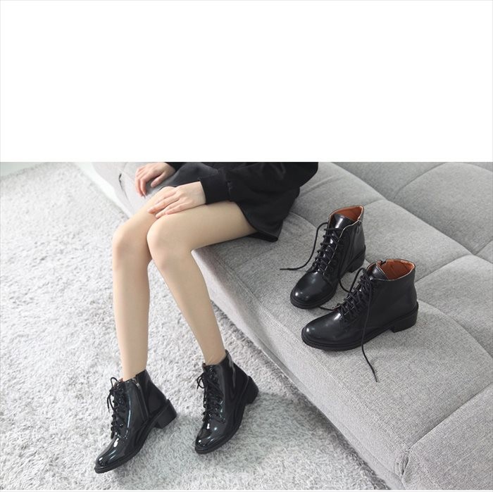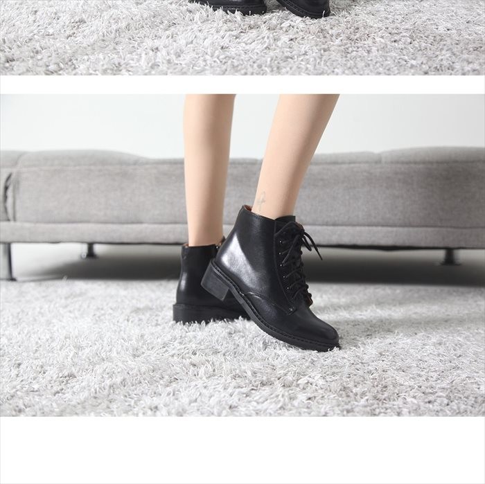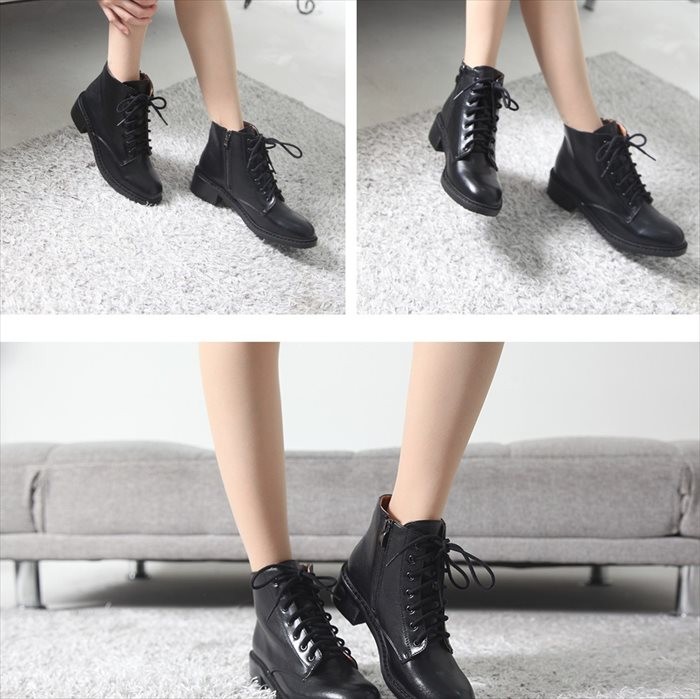 商品名:ショートブーツ レディース ローヒール レースアップ 太ヒール チャンキーヒール 2017 秋冬 ファッション 靴 婦人靴