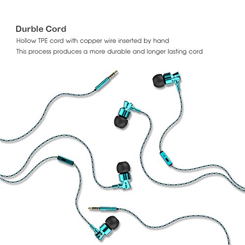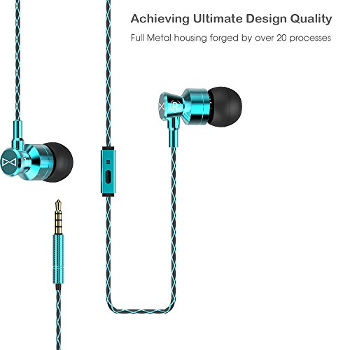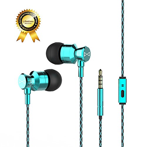 Marsno M1 Wired Metal In Ear Headphones, Noise Isolating Stereo Bass Earphones With Mic,Dynamic Drivers Provide Stereo & Crystal Clear Sound (Blue)