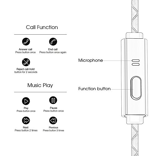 1 Button in-line Control: The built-in microphone eliminates exterior noise. 1-button in-line metal remote gives you the power to easily take and end phone calls, control music with a touch of a button, such as play/pause, skip or rewind music.