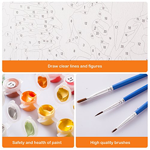 ✍PACKAGE INCLUDING:Painting by numbers kit include 1 PC Pre-printed textured art canvas (without framed), 1 set acrylic paints, 1 set brushes(include 3pcs).