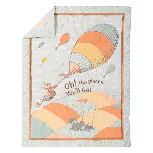 Trend Lab Dr. Seuss Oh The Places You'll Go! Unisex 5 Piece Crib Bedding Set, Orange/Yellow/Green and White