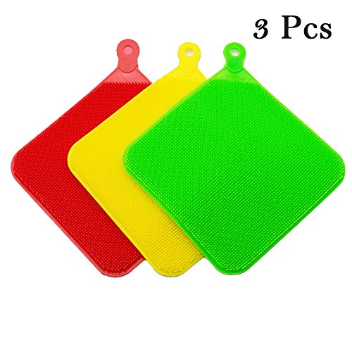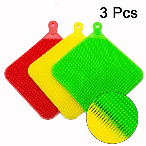 3 PACK AMHII SILICONE SCRUBBERS SPONGE FOR CLEANING DISHES -ANTIBACTERIAL, FOOD-GRADE, MILDEW-FREE, NON STICK DISHWASHING CLOTH BRUSHES