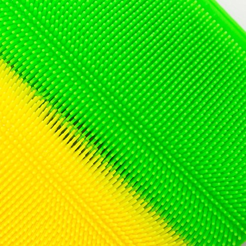 These silicone dish scrubbers features two different sides: one side with super dense bristles and other side with ridges that can be used for cleaning makeup brushes, or as a coaster or a trivet due to its heat resistant feature.