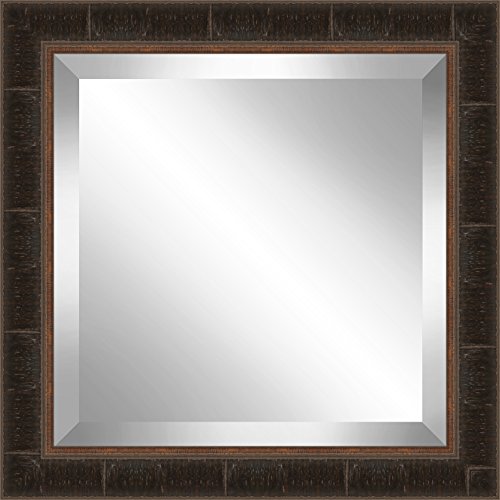 Ashton Art & Decor BPMRP104-1818 Ashton Art & Decor Dark Brown Bark Effect Framed Beveled Plate Glass Mirror, 24 by 24"