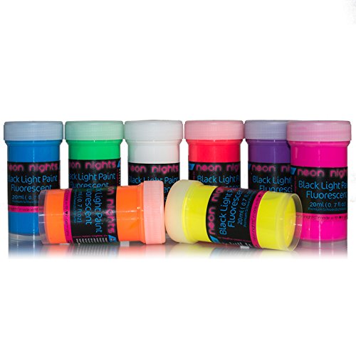 - VIBRANT COLOURS ▶ These paints not only glow brightly under UV/black lights, but due to their strong pigmentation, these paints perform like any other neon paint in daylight!