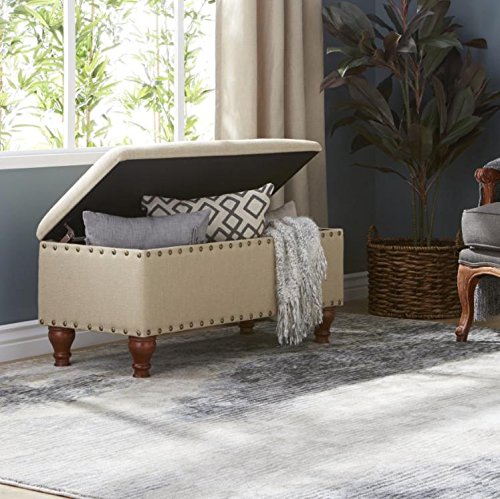 -. Title : STYLISH Upholstered Nailhead Storage Bench in a Contemporary Design with Safety Hinged Lid. Perfect for an Entry Way, Hallway, Family room or Bedroom